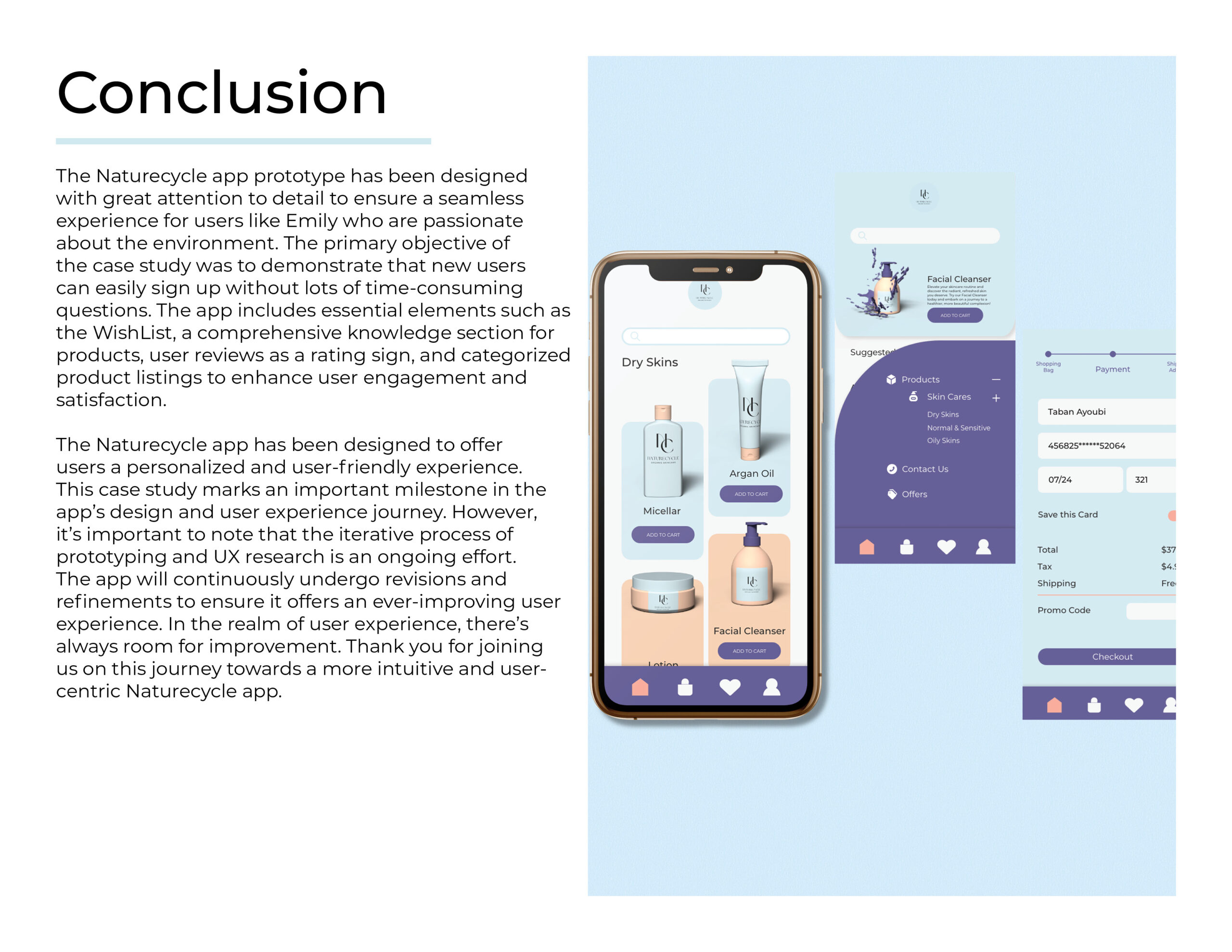 The Naturecycle app has been designed to offer users a personalized and user-friendly experience. This case study marks an important milestone in the app’s design and user experience journey. However, it’s important to note that the iterative process of prototyping and UX research is an ongoing effort. The app will continuously undergo revisions and refinements to ensure it offers an ever-improving user experience. In the realm of user experience, there’s always room for improvement. Thank you for joining us on this journey towards a more intuitive and user-centric Naturecycle app.